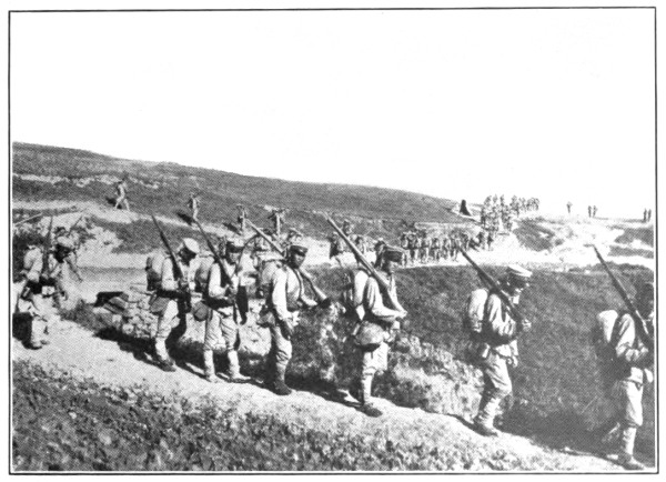 Regiment after regiment, fresh from Japan, pour along the newly made highways