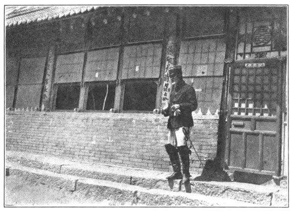 That night I handed in at the Chinese mudhouse, where the telegraph ticked cheerfully over the hundreds of miles of Manchurian plains and Korean mountains to Fusan, and thence by cable to Nagasaki and the civilized world, a short dispatch to my office in Chicago, “Leaving the front immediately. Wire instructions Peking.” Two days later at sunrise we took our leave. I shall not soon forget our leave-taking from the army whose fortunes we had followed off and on for nearly eighteen months. So many of the correspondents left the “front” with such bitter feelings toward their erstwhile hosts that, in justice to the Japanese, it is but fair to chronicle that in one Army of the Mikado at least the relations between the staff and the soldiers of the press were anything but unpleasant, and that we, who left the Third Army that September morning, left with only the tenderest affection toward the commander under whose shadow we had lived, slept and thought these many months—that is General Baron Nogi—than whom no finer gentleman, ardent patriot and gentle friend ever drew the breath of life. The night before our departure the general entertained us at a farewell banquet and in a kindly little toast bade us god-speed on our journey. That night we shook the hands of all the staff whom we had known so well, and went to our quarters thinking that we had seen them for the last time, for we were to leave at daybreak for the long ride to the railroad. The next morning as we were mounting our horses to begin our journey an orderly from headquarters rode up and said that Major General Ichinohe (Nogi’s Chief of Staff and right-hand man during the siege of Port Arthur) had requested that we stop at headquarters on our way out of town. So it was that accompanied by the small cavalry escort that had been detailed to see us to the railroad, we rode into the compound where Nogi and his staff had lived that last long summer of the war.