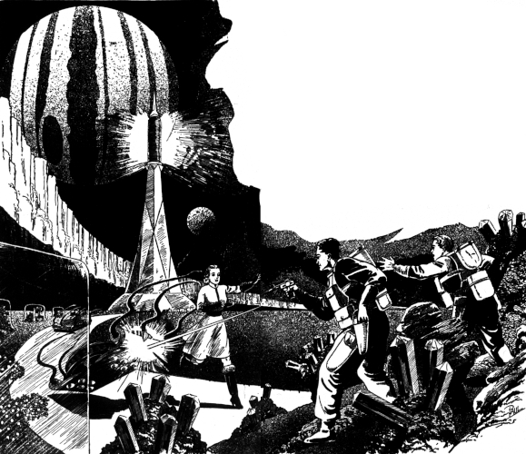 A split second later the heat pistol in Bayley's hand spat again. Turning weakly, Harwich saw Clara crumple and go down. In another instant, Paul became the third victim.