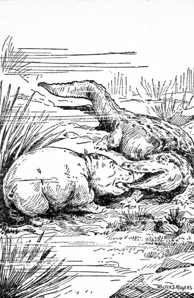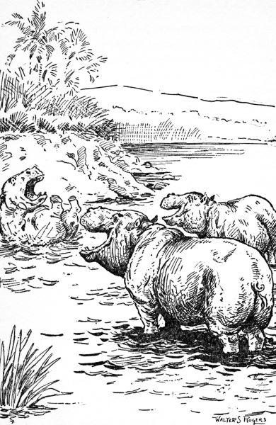 So that is how the three little hippos were named, and after that they kept on eating and growing and growing and eating until they were quite large—larger even than pigs.