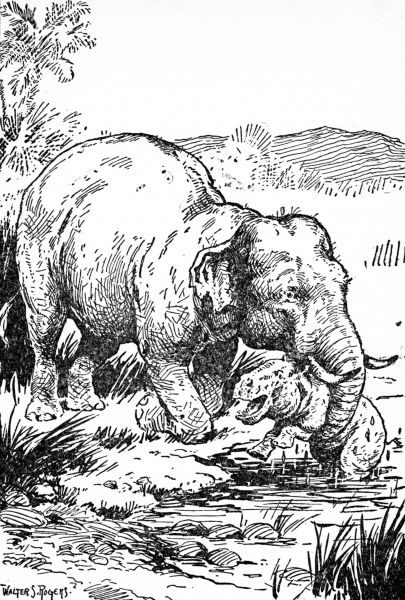 “No, I’ve been in swimming enough to-day,”[12] said Bumpy. “I’m going back into the jungle and sleep,” for the river where the hippos lived was near a jungle, in which there were elephants, monkeys and other wild animals.