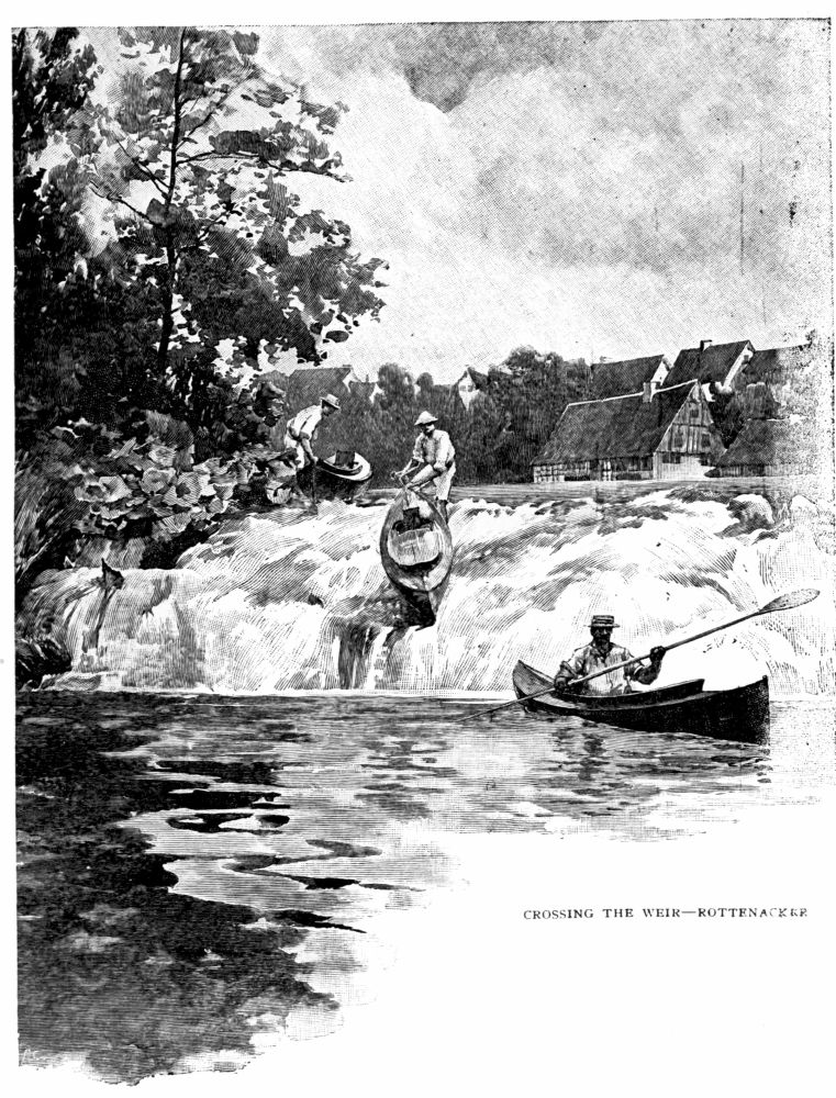 indulging in the exhilarating prospect of explorations in the fascinating field of philology, and looking forward with no little interest to revisiting under the pleasantest of auspices old friends and familiar scenes. We agreed to meet at Donaueschingen on June 22d, and made all our arrangements to have the canoes reach that point on or previous to that date. The experience of old travellers with canoes was all against the successful consummation of this plan, particularly as two of the boats had to be shipped from New York, and would not be finished until the 3d of the month. The fate of the other canoe was more or less certain, for the owner decided to watch it himself all the way from London to the place of meeting, having learned after many disappointments that this process of transportation, although irksome, was the only one he could depend upon. On the evening of Saturday, June 20th, two of us left London in the wake of the Admiral of the fleet, who had paddled his canoe down the Thames to the Flushing boat some days before. Thirty-six hours later, on the morning of the 22d, refreshed and cheered by the brisk air of the mountains after two feverish nights on the journey, we saw between the showers of rain the brilliant sunlight sparkling on a tiny mountain brook near the little hamlet of Sommerau, on the eastern slope of the water-shed. Although we had no{4} map or guide-book, we knew at once that our acquaintance with the Danube had begun. The long-dormant sporting corpuscles in our blood took on a sudden and stimulating activity, and we were in a nervous quiver to begin our long-dreamed-of cruise. The Rhine had failed to charm us with its majestic scenery; we had seen only the hideous scars that modern man has made on the fair face of nature there, with villas of carpenter’s Gothic and summer hotels of repulsively mammoth proportions. Cologne, Mayence, Strasburg, which, under ordinary circumstances, would have been joys to us, had been on this journey aggravating impediments in the way of our progress, for all the trains had seemed to combine viciously to break connections at these points and to force us to delay our eager flight. The charms of architecture and art, although always potent, had been but a meagre consolation to us in our impatience to begin our intimate communion with Nature. Even the wonderful railway journey over the pass, while it had put us in a better mood and temporarily stirred our emotions, had not given us a tithe of the sensation that the sparkle of the rivulet caused as we caught sight of it after a great gray curtain of rain had been driven away by an all-powerful flood of sunlight.