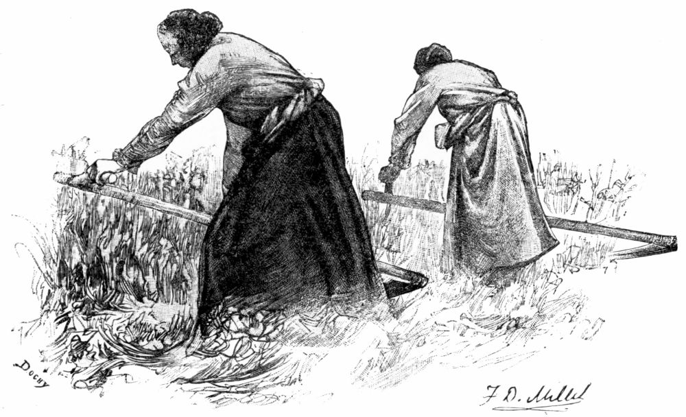 distance. The peasants rattled across the{296} fields in their farm-wagons,