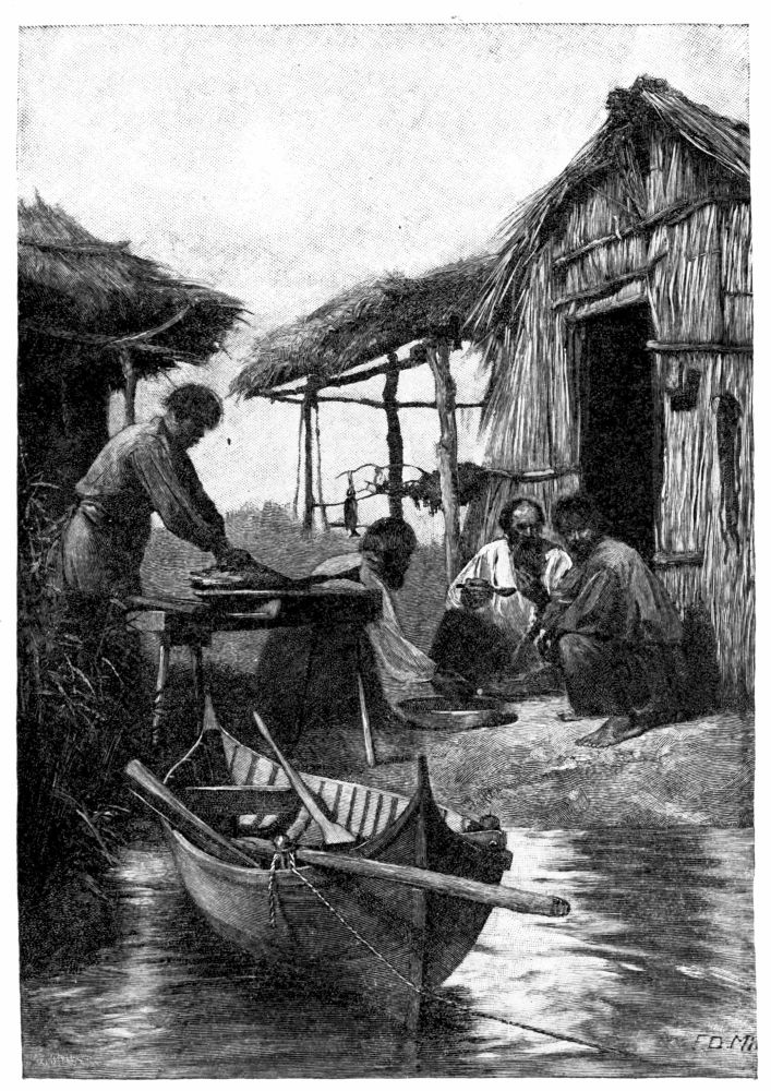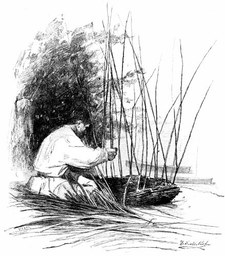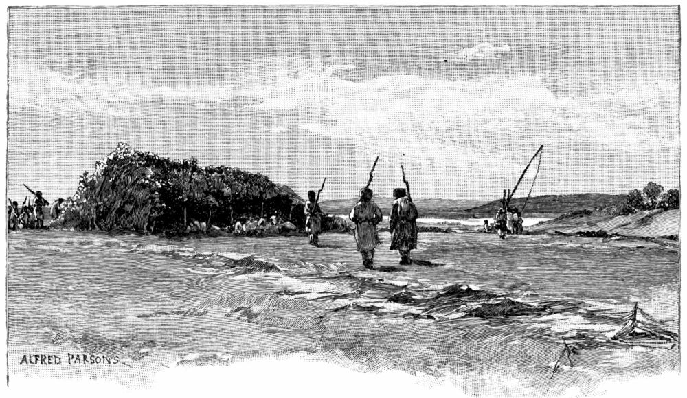 After our first introduction to real mud just below Belgrade, we had always looked forward to an ideal bivouac on a clean sandy beach on the shores of the Black Sea, where we should find drift-wood in abundance, firm smooth ground under our feet, and pure sweet air to breathe. We felt a certain elation, then, as we passed Kilia and saw before us a great flat, unbroken reed-covered marsh, in the belief that within a few hours we should probably reach this ideal camp and bid good-bye to Danube mud and its accompanying annoyances. We stole along in the shelter of a fringe of large willows on the Russian bank for about five miles. Through the trees we could see great vineyards and cultivated fields and occasional farm-houses. Peasants were at work repairing the low dikes that protect the farms from the overflow of the river, or weaving fresh rods in the wattled fences. We occasionally checked our speed to watch these operations, and if we had attempted to land would probably have been met with a prompt challenge, for all along at regular intervals the white uniforms of the sentinels could be distinguished among the undergrowth, and{309}