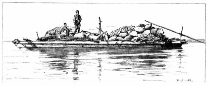 number of officers came down from their quarters to look at our canoes, and when, a few minutes later, they saw us getting ready for bed, politely wished us good-night, and went away. Our bivouac was not far from a country road, and every passer met a prompt challenge from the soldier, who never deserted our fire except to perform this duty. Feeling very much as if we were within the lines of an army in war-time, we retired into the shelter of our tents and left the soldier to whisper to himself and utter mournful sighs by the few remaining coals. Some time in the night he was relieved, and the new sentinel withdrew into the cover of the willow-trees, and did not disturb us in any way. In the early morning a boat-load of natives rowing up-stream past our camp was immediately challenged by the guard, and ordered to come ashore. One of the men landed and carried the passports up to the officers for the regulation visé before the boat was allowed to proceed. We then appreciated the fact that we were not treated any differently from the inhabitants themselves, but that, as far as the Custom-house regulations went, the river-bank was practically in a state of siege.
