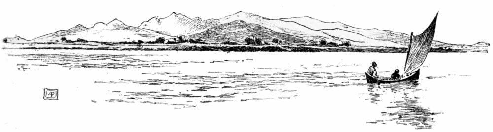 We worked our way out of the tangle of reeds and across the shallows into the open water and turned our bows to the southward, where a long sand-beach stretched away in a graceful curve. A double line of breakers followed the{327}