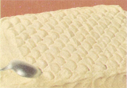 Hobnail Fudge Frosting—Use Betty Crocker Chocolate Fudge Frosting Mix. Frost top of cake thickly. Press down with bowl of teaspoon, swirl slightly; draw up sharply. Repeat for an all over hobnail design.