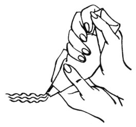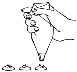 3 For drop flowers and rosettes, hold cone straight up and down. Press out icing, twist cone, and release.
