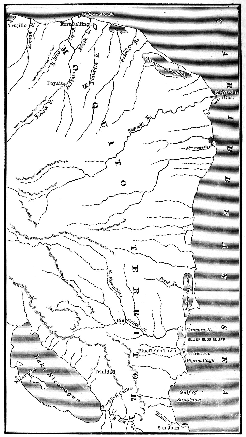 | State Government—Director Buitrago's Conservatism—British Aggression—Director Sandoval's Rule—Internal Troubles—Guerrero's Administration—The Mosquito Kingdom—Its Origin and History—Bubbles—British Pretensions—Seizure of San Juan del Norte—Diplomatic Complications—Clayton-Bulwer Treaty—Nicaragua Recovers her Own—Relations with Foreign Powers—An American War Ship Bombards San Juan del Norte—Pineda's Government—Establishment of the Republic—Party Dissensions—Legitimists versus Democrats—Chamorro and Castellon—Civil War—Death of Chamorro—Estrada Succeeds Him | 238 |