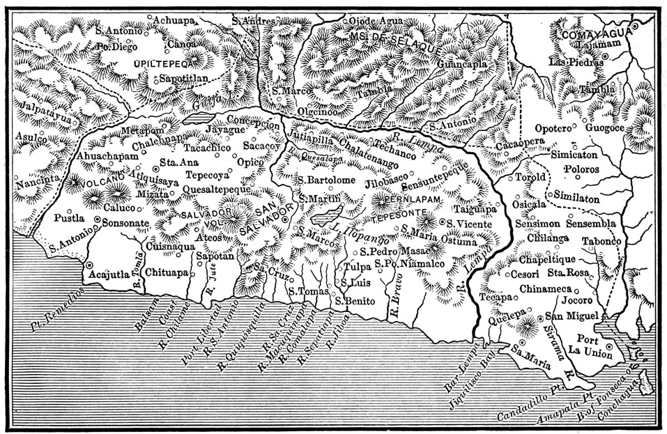 | Malespin's Acts—Lindo's Coup d'Etat and Deposal—Jefe Guzman—Revolt at Santa Ana—President Aguilar—The Bishop Expelled—Viteri's Alliance with Malespin and Honduran Oligarchs—President Vasconcelos—British Hostilities—Salvador's Relations with Foreign Powers—San Martin's Administration—Destruction of San Salvador—President Campo—Campaign against Walker in Nicaragua—Establishment of the Republic—Santin's Overthrow—Presidency of Gerardo Barrios—War of Salvador and Honduras against Guatemala and Nicaragua—The Latter Victorious—Barrios' Flight—Restoration of Peace—Dueñas as President—Barrios' Subsequent Return—His Capture and Surrender by Nicaragua—His Execution in San Salvador | 285 |