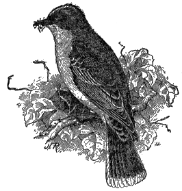 Among the early spring arrivals to their northern homes none is more welcome than the phœbe (fig. 18). The common phœbe[48] breeds throughout the United States east of the Great Plains, and winters from the South Atlantic and Gulf States southward. Its western relative, the black phœbe,[49] is found from Texas west to the Pacific coast, which it occupies as far north as Washington, replacing through most of this region the common or eastern form.