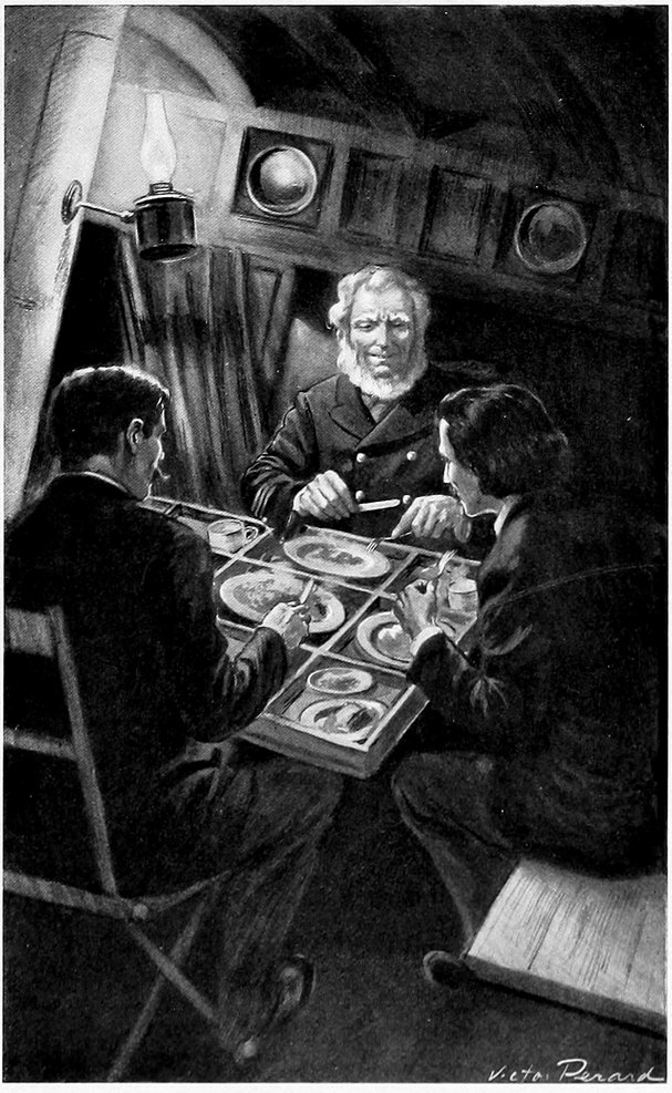 On account of the small size of the schooner, the accommodations on board were not very comfortable. The tiny cabin had three narrow bunks—one for the captain, another for the mate, the third for myself. A little cupboard, containing the plates, glasses, forks, spoons, knives, etc., secured against the rolling of the ship, was near one of the bunks.