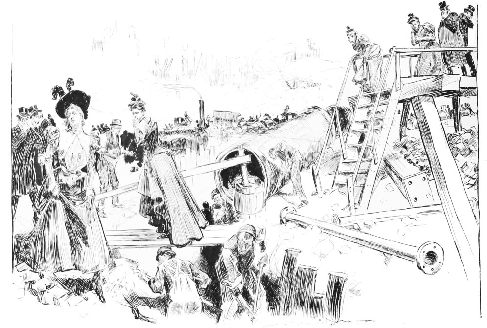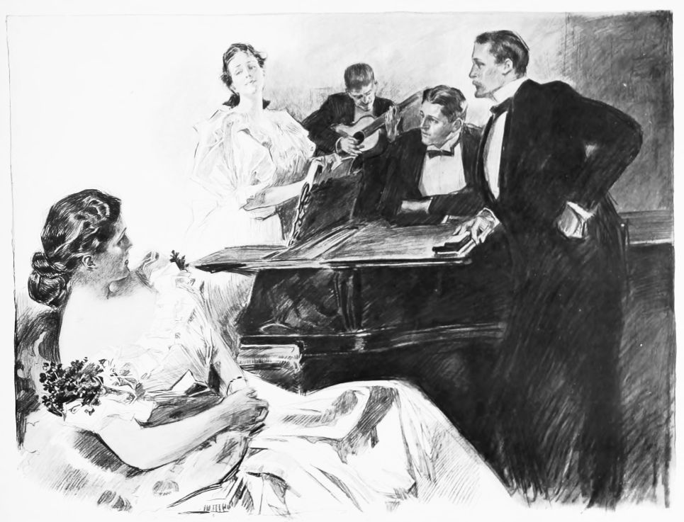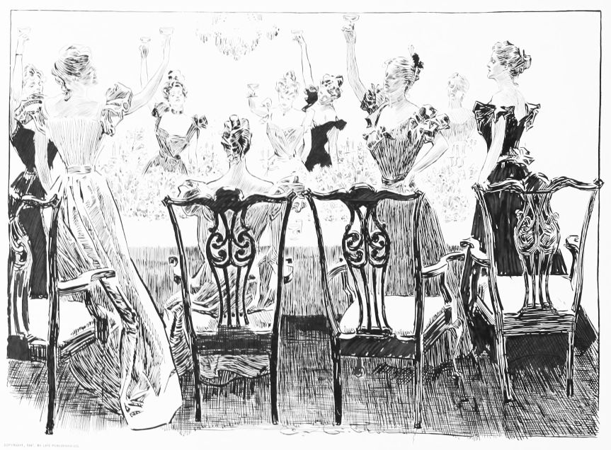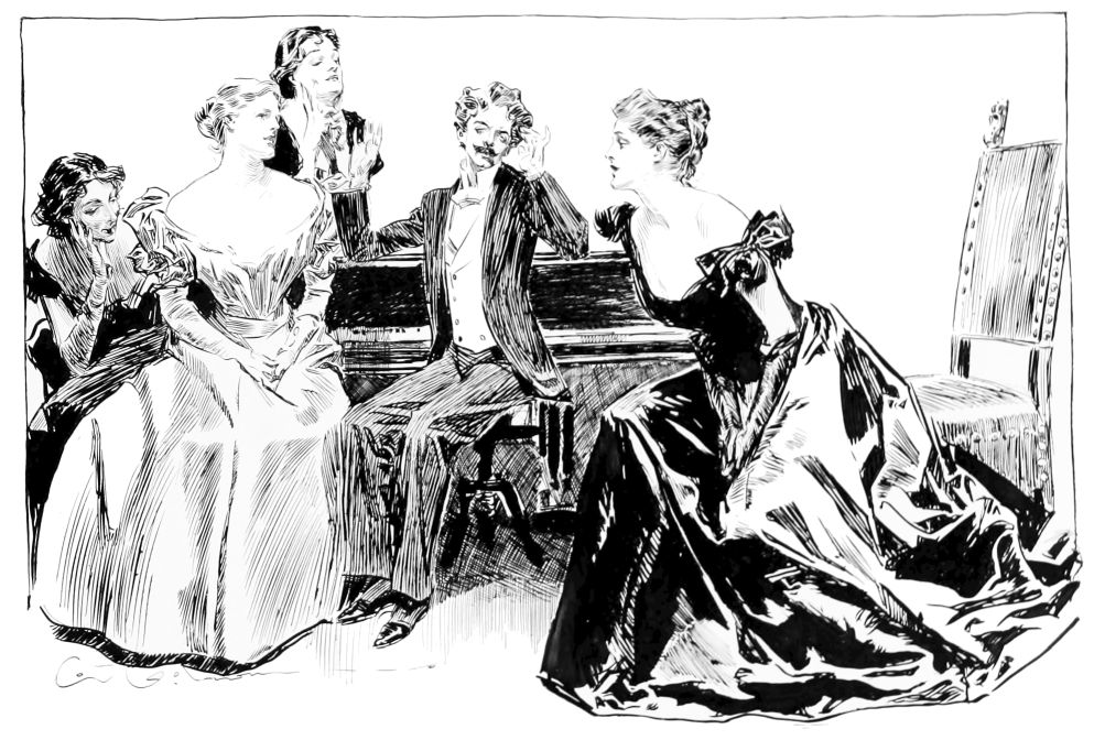 THIS is the third book in the regular series of Mr. Gibson’s published drawings, the first one being entitled “Drawings by C. D. Gibson,” the second, “Pictures of People.” Each book contains eighty-four of Mr. Gibson’s best cartoons, and all are uniform in size, shape and binding. Thanks are due to Messrs. Mitchell & Miller, Charles Scribner’s Sons, The S. S. McClure Co. and Harper & Bros., for their kind permission to reproduce a number of the drawings included in this collection.