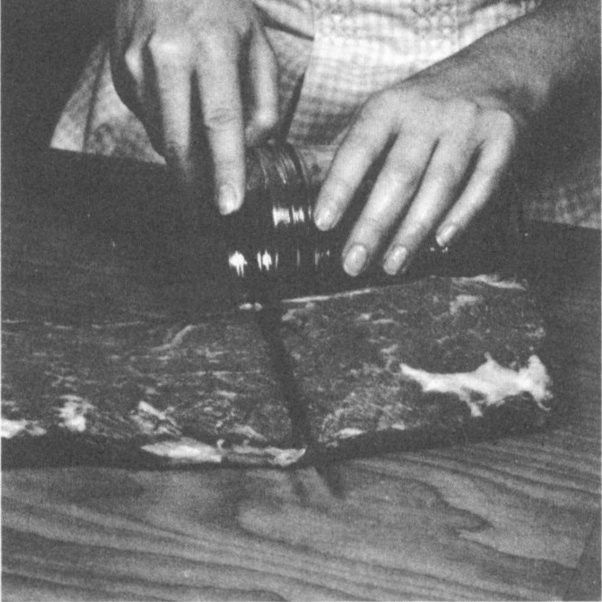 Work with one glass jar or tin can at a time. Keep precooked meat hot while packing. Use boiling liquid—broth, meat juice, or water—if directions call for added liquid.