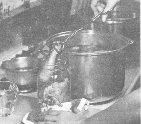 Before canning, jars must be thoroughly clean. It is not necessary to sterilize them before they are filled, however. Processing at the recommended steam pressure sterilizes both the containers and their contents.