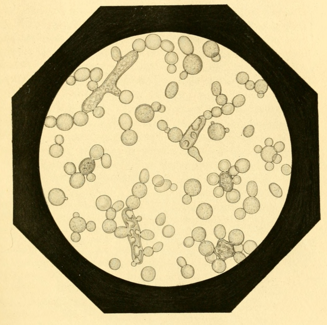 The expression, “diseased ferments,” is justified by the circumstance that the propagation of these ferments is always accompanied by the production of substances which are acid, putrid, viscous, bitter, or otherwise unpalatable, a consideration of commercial rather than scientific importance. From a physiological point of view, all these ferments are of equal interest and importance. The botanist, as a man of science, in contemplating nature, must give equal attention to all plants, whether useful or noxious, since they are all governed by the same natural laws, among which no order of merit could be established. The exigencies of industry and health require, however, wide distinctions.