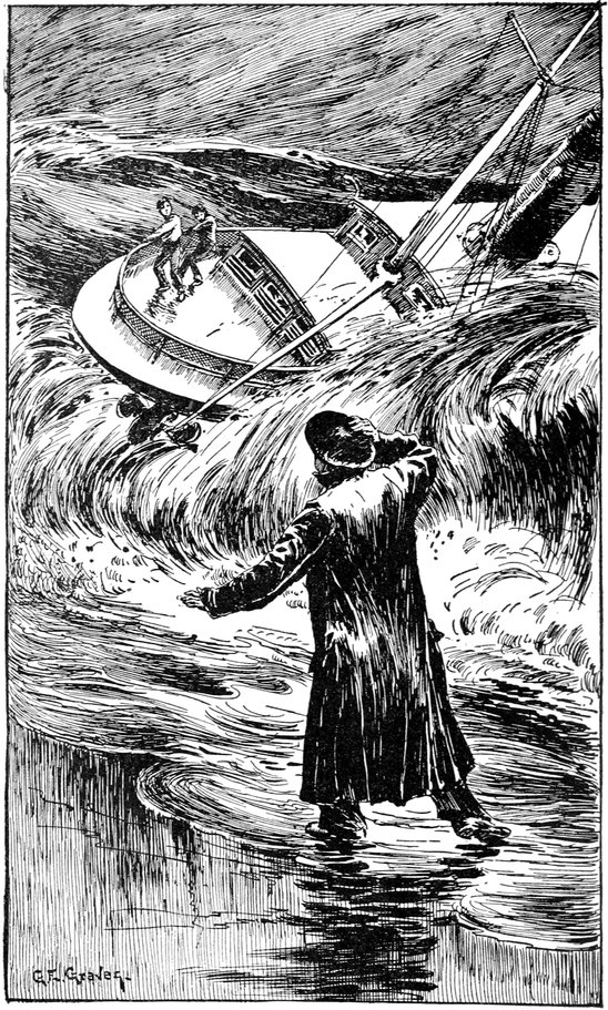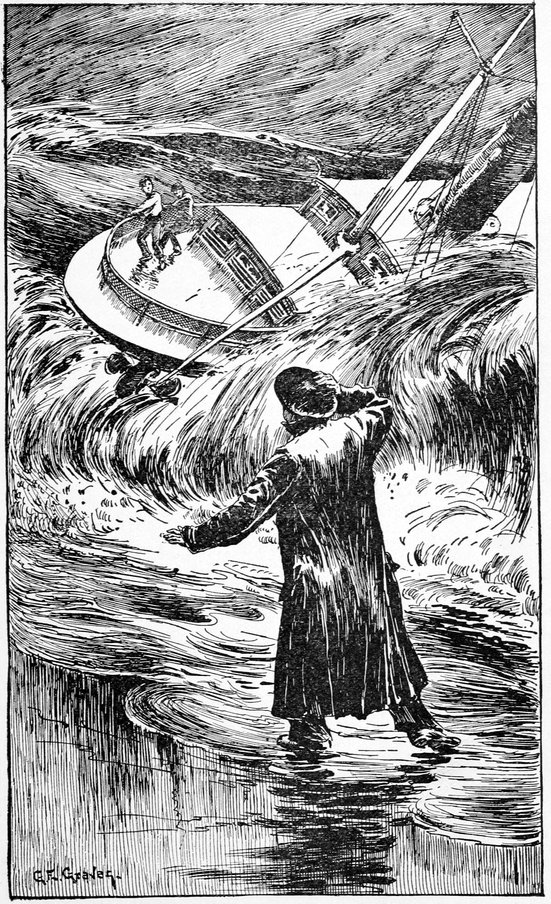 “Give it to her for all she’s worth!” he shouted excitedly, running through the cabin to the main companion-way, and just as he was where he could look out, the boat swept past within half a dozen feet of the stern.