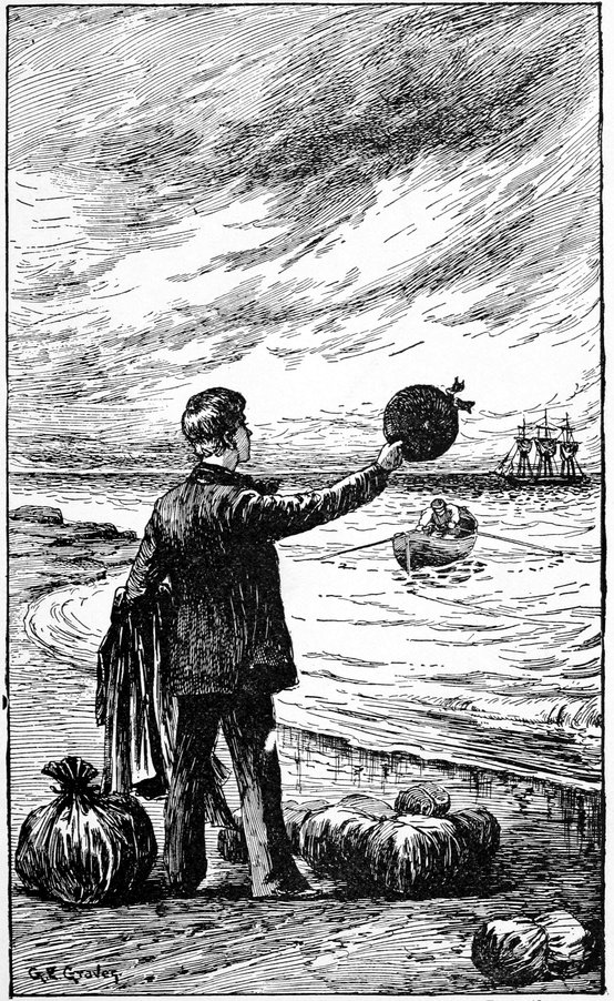 The men in the water swam directly toward the boat, and as if to pick them up at the earliest possible 272moment, the sailing master pulled toward them.