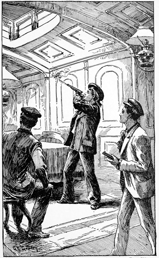The worthy Manuel was creeping as stealthily as a cat to the engine-room door, and before he could stretch out his hand to grasp the knob a bullet struck his arm, calling forth a wild shriek of pain.