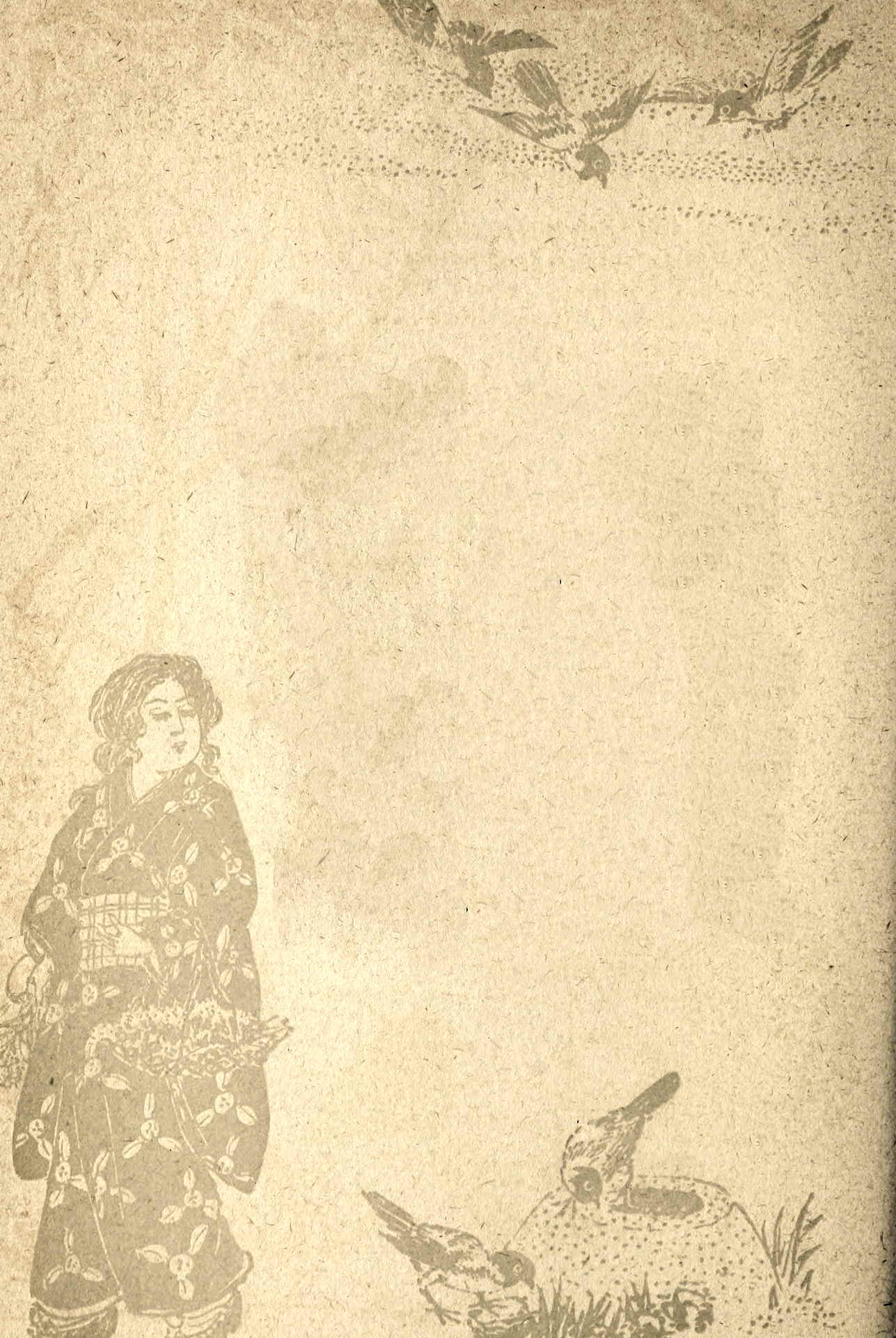 Within, the stranger was imparting bits of her history to the sympathetic Aoi. She was hardly conscious of her words, which were spoken through her semi-delirium. Her feverish eyes, wide open, shone up into the bending face of Aoi, and held the Japanese woman with their piteous appeal. She seemed soothed under the gentle touch of Aoi’s hand on her brow.