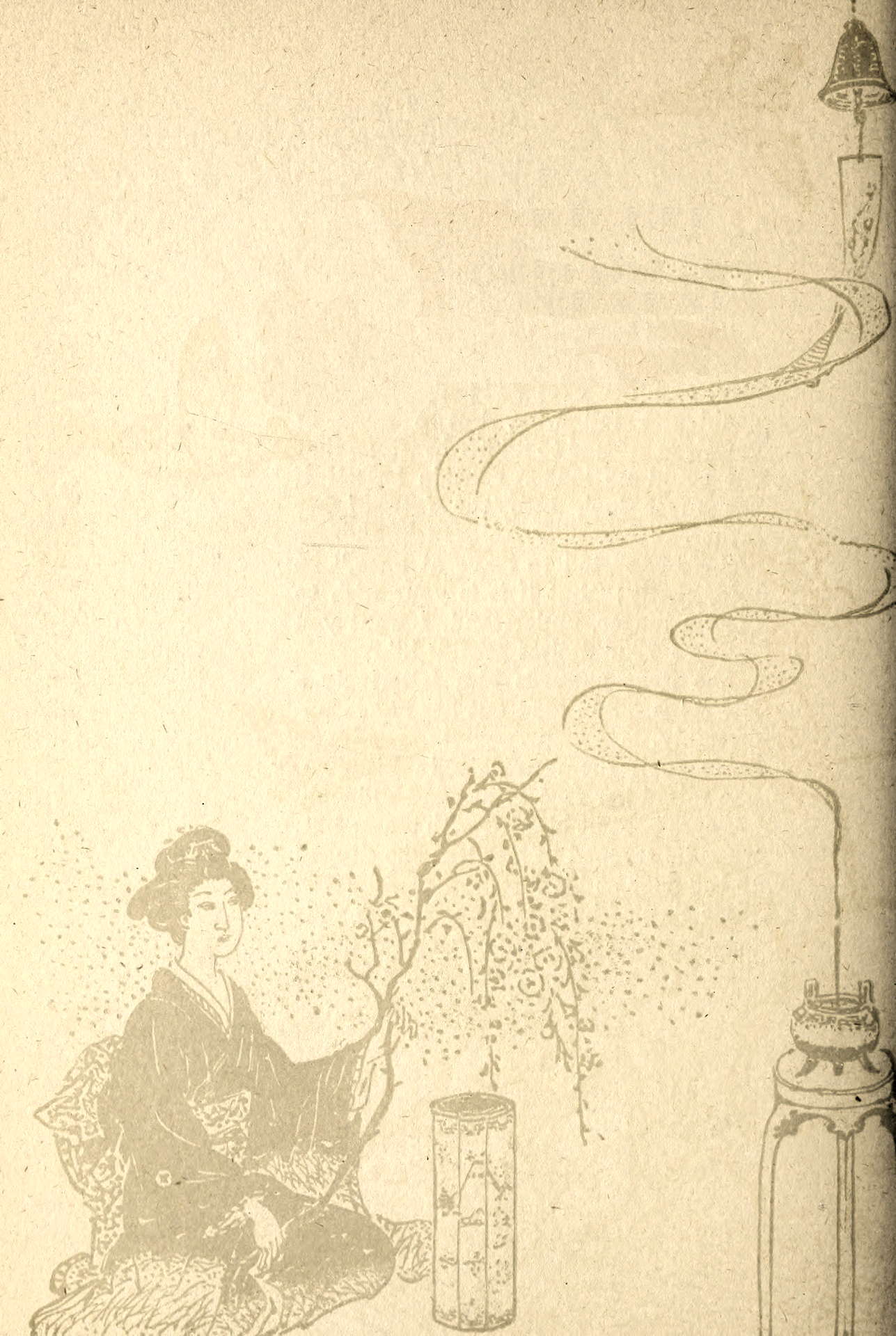 “Tsh!” scolded the old woman, as she poured the steaming milk into a shallow bowl, and broke pieces of the rice-bread into it. “What, would you advise old Mumè about such matters? Would you have me burn the honorable babe?”