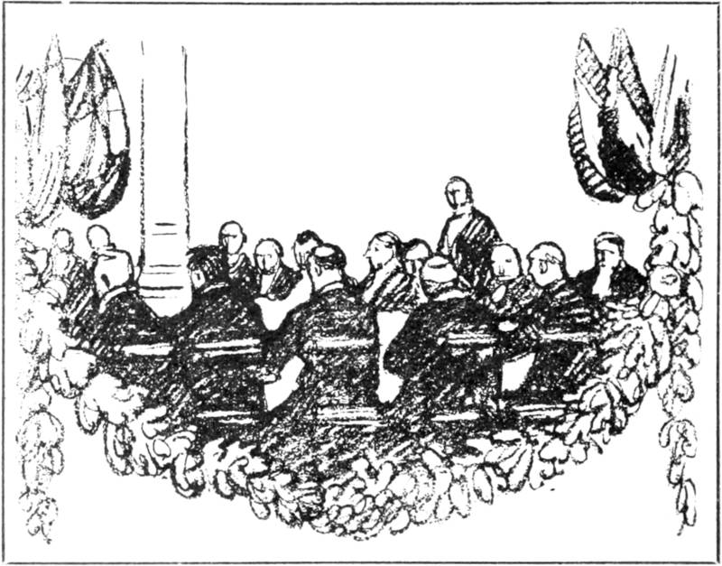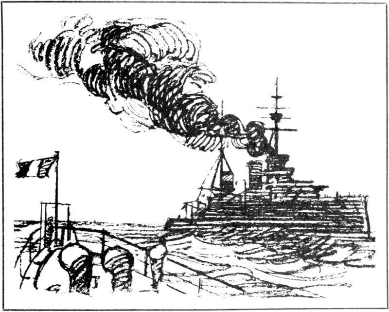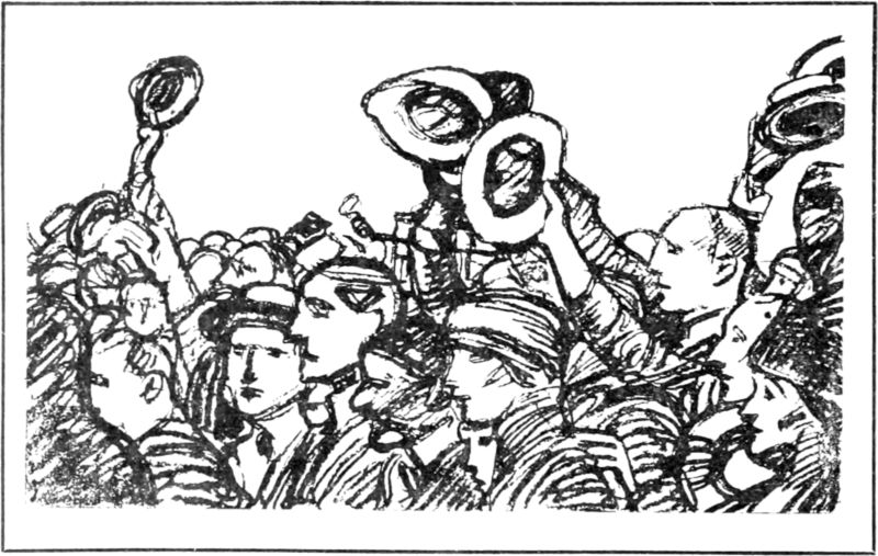 Puis les orchestres jouèrent la Marseillaise et, avant le Chant américain, un autre hymne qui était Le Chant du Départ, inconnu là-bas—mais si terrible que beaucoup partirent inquiets, anxieux de savoir quelle troisième nation s’était glissée, en armure, entre la France et l’Amérique [p. 34] nues, rassurés le lendemain quand ils apprirent la vérité par le journal.