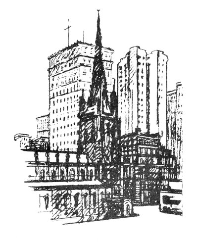 Tout ce qui s’était amassé en bloc au-dessus de nous, le temps, la semaine, s’effrita, et il tomba un soir sur le pont une nuée de petites nouvelles américaines. Les navires venant de France, sans lest, laissaient à peine [p. 10] une trace. Les bateaux de New-York, combles, traçaient un long sillon. Au-dessus de la corde qui sépare les premières des secondes, une jeune Française et un Américain se disaient adieu, et rentraient l’un au cœur de la richesse, l’autre au cœur de la pauvreté. Ceux qui savaient que Joffre allait bientôt venir, parfois se retournaient. Puis un jour, où, hélas, je ne pus être rasé,—car le capitaine de la Sylvie, coulée en Grèce, qui allait chercher le Bacchus à Détroit, se faisait couper les cheveux, les favoris, la moustache, la mouche et la barbe,—comme une de ces dalles enchantées sur la terre, avec un gros anneau, par où l’on arrive aux antipodes, une énorme bouée rouge parut, fixée sur la mer plate, qu’on souleva, et ce fut l’Amérique. Le bateau poste déjà nous harcelait, et nous écrivions lentement, pour qu’il ne les emportât pas, les lettres qui devaient rester à bord et revenir en France. Sur le remorqueur, à la place où je l’avais laissé voilà dix ans, Jérôme Greene nous attendait, se levait quand un navire ne passait pas dans le voisinage, et je montrais son canot aux commissaires du port qui voulaient savoir où j’allais, en Amérique. Puis un nuage s’éleva, qui était Long-Island. L’Américain au doigt coupé me désignait du pouce l’échancrure du nuage où il se baignait, la voussure du nuage où un chanteur de Honolulu avait joué avec les pieds sur son piano... puis New-York apparut; de gigantesques cubes d’ombre rangés parmi des cubes de lumière plus gigantesques encore bornèrent l’horizon, les bâtiments vieux de plus de dix ans à côté de [p. 11] ceux de cinq ans, et, dominant, plus blancs que la lumière même, les édifices de l’année étincelaient. Bordéras tout joyeux me serrait les épaules, tendait la main vers eux: