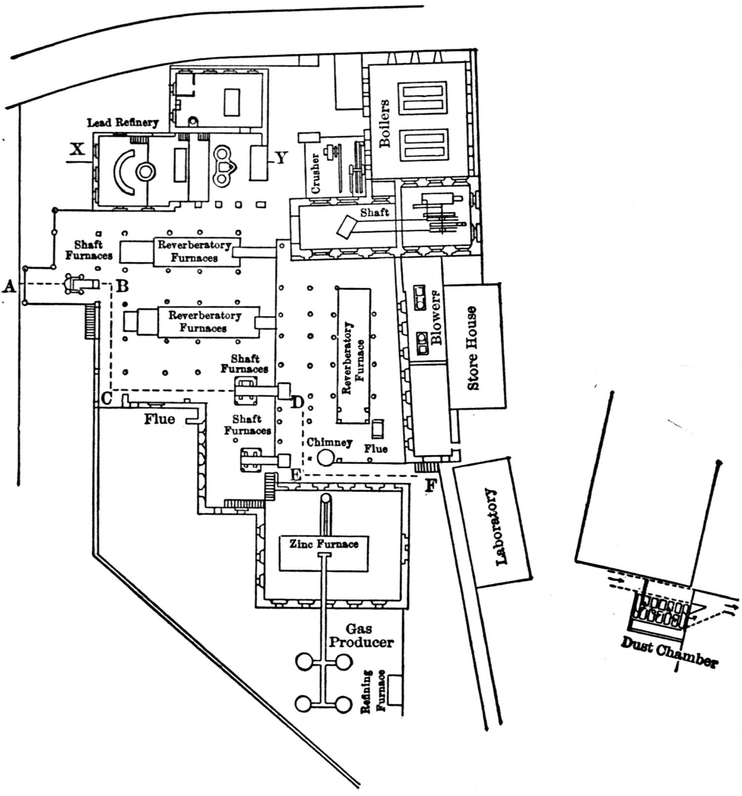 [36] This improvement did not originate at either Alton or Collinsville. It had previously been in use at the works of the Missouri Smelting Company at Cheltenham, St. Louis, but the idea originated from the practice of the Picher Lead Company, of Joplin, Mo.