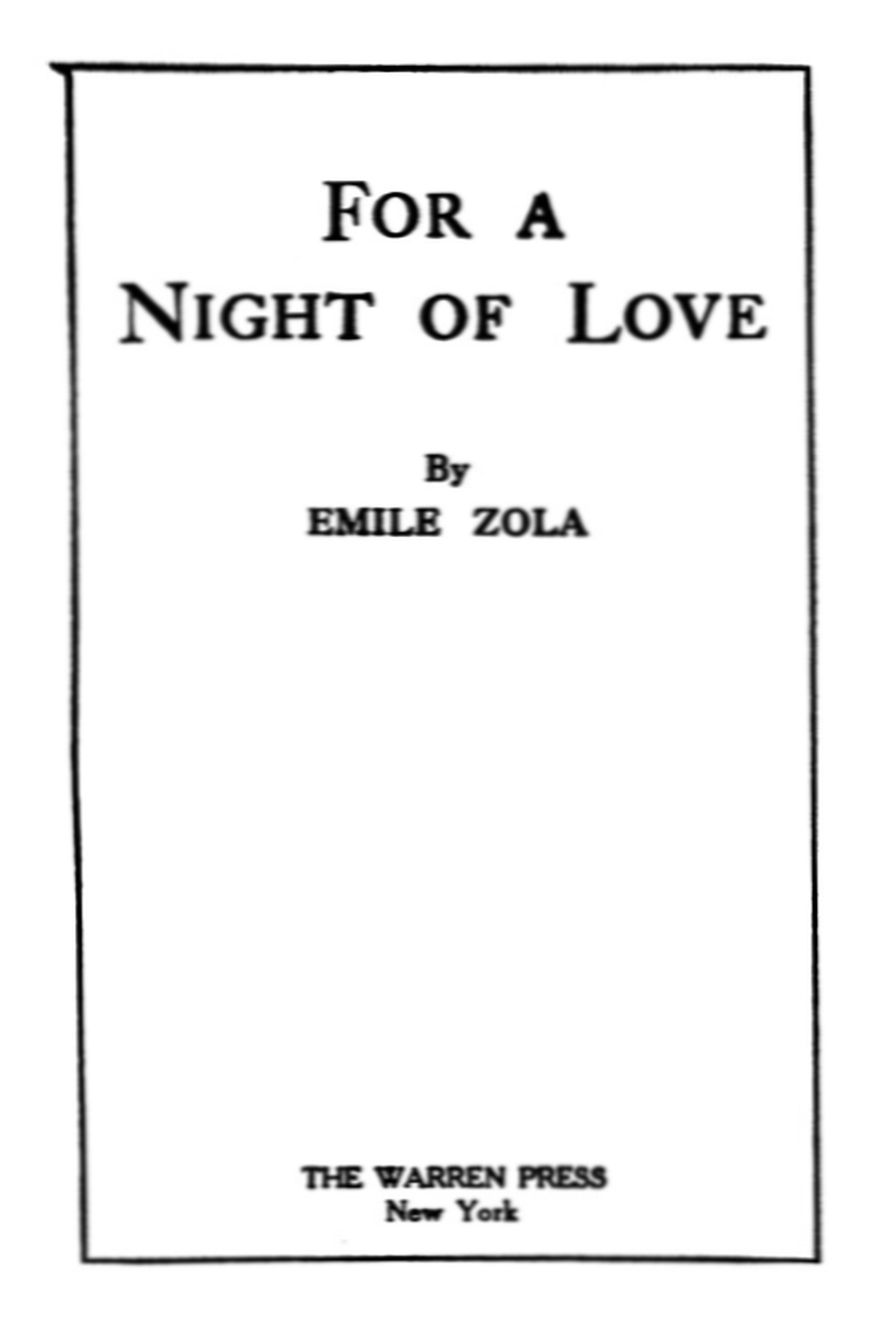 Three times, he thought he heard a sigh issue from the alcove. He stopped, terrified. Then, when he listened intently, he found it was sounds from the festivities below,—dance music, the laughing murmur of a crowd. He closed his eyes; and, suddenly, instead of the blackness of the room, he saw brilliant lights, a flaming drawing-room, in which was Therese, in her white silk, waltzing to an amorous air. The whole house vibrated to joyous music. He was alone, in this horrible corner, shaking with fear!