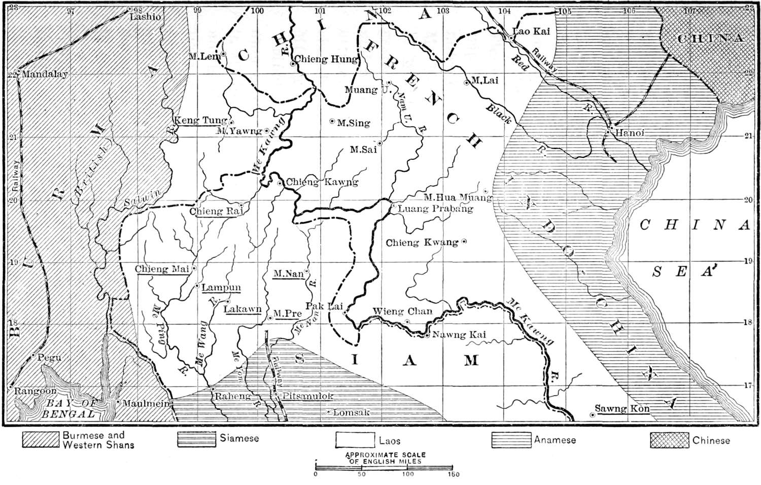 The recent tours of exploration by the Rev. W. Clifton Dodd, D.D., and the Rev. John H. Freeman have disclosed the fact that the Lāo peoples are far more numerous and more widely distributed than we had formerly supposed. Their numbers are now estimated at from twelve to sixteen millions, and their habitat includes not only the Lāo States of northern Siam but 6extensive regions north and northeastward in the Shan States, Southern China, and French Indo-China. The evangelization of these peoples is, therefore, an even larger and more important undertaking than it was understood to be only a few years ago. All the more honour, therefore, must be assigned to Dr. McGilvary, who laid foundations upon which a great superstructure must now be built.