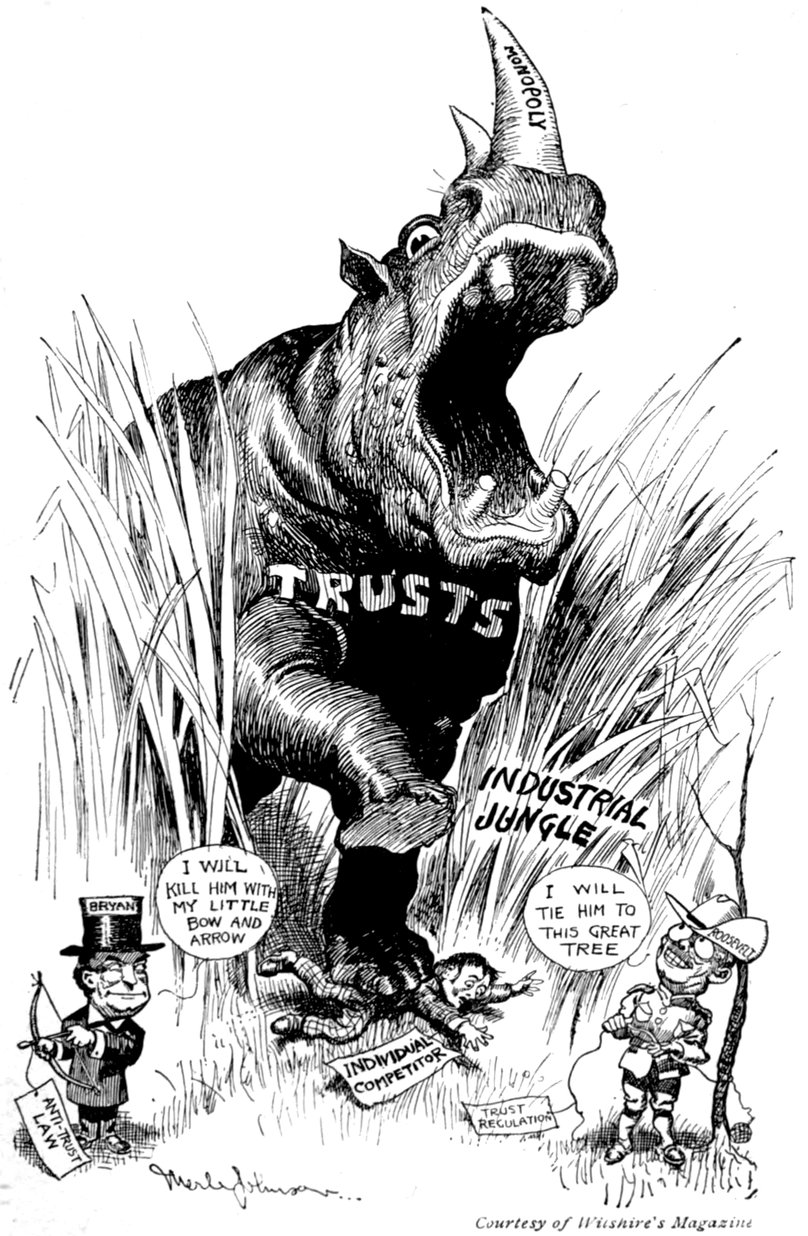 31And it is precisely the same process. We may see nearly the whole of it in this country. It begins with the colonial village, where every man owns a little land and raises his own food; also he cobbles his own shoes, spins his own wool, weaves his own cloth, and makes his own clothes. In the very earliest days, he never buys anything, because there is nothing to buy. He may be the deacon or the schoolmaster or the judge, but still he has his own farm, and any other man in the village is about as well fitted to be the deacon or the schoolmaster or the judge as he. But then his goods expand and war begins—industrial war, I mean—a horse-trade, for example. Political evolution is slow, because the rate of increase of men is limited; but the rate of increase of goods proves to be unlimited. Machines are invented, and straightway the industrial process is accelerated tenfold. It took a thousand years to evolve a monarchy; it took only a hundred to evolve a trust.