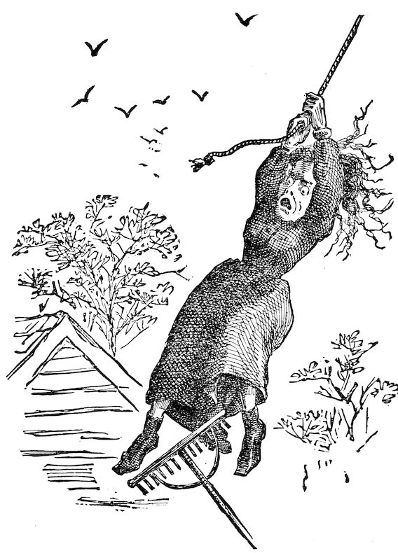 475“He gin a rousin’ whoop like a Chilchat Indian, when he sights a fur hunter. Throwin’ away the pitchfork—which accidentl’y harpooned the old lady in the back who was rakin’ behind—and jumpin’ from the load, he took across the field to’ards the turnpike, swingin’ his old straw hat and hollerin’:—