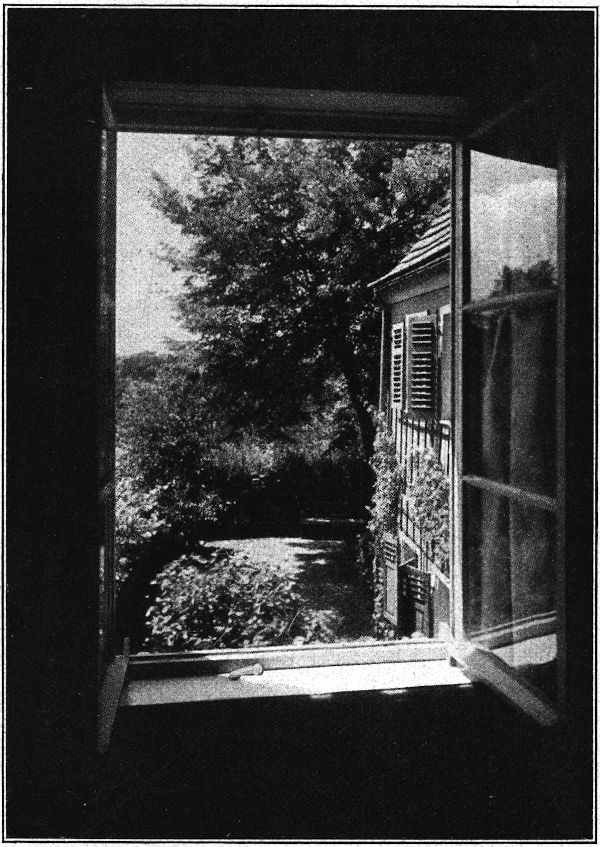 Im Giebelzimmer, in das von drei Seiten Garten, Bäume und Berge hereingrüßen, wohnte das gastfreie Ehepaar.
