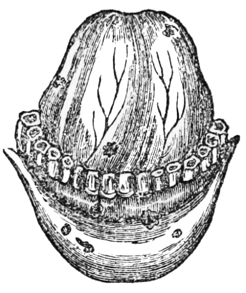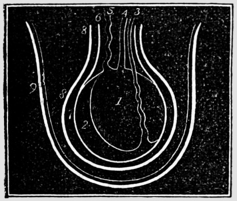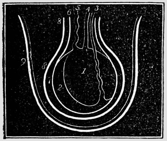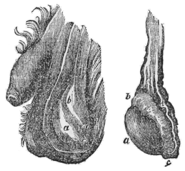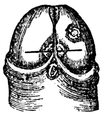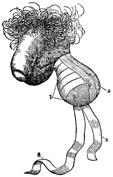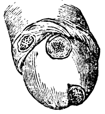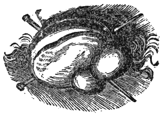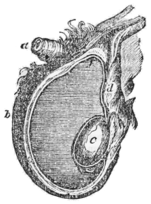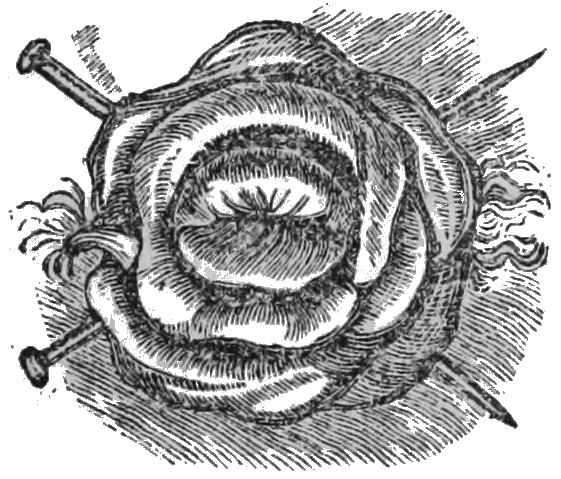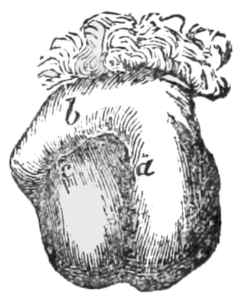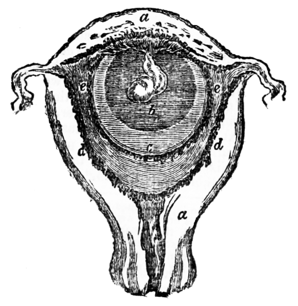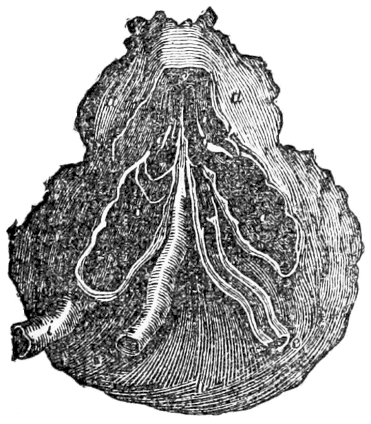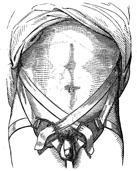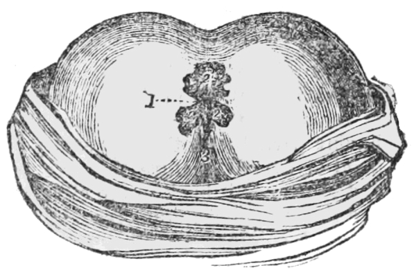 [10] The membrane containing the liquid comes away with the after-birth or placenta; but when it is brought away with the child’s head, it is named a “caul,” to which the ignorant attach a superstitious belief that it saves the possessor from drowning, and hence it has been a source of traffic between the cunning and the weak-minded. Cauls are made by detaching the membrane from the placenta.