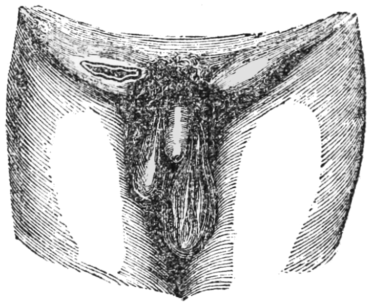 Some years ago the idea first occurred to me that a popular treatise, divested as much as possible of technical phraseology, explaining to the non-medical reader the structure and anatomy of the parts primarily affected by the venereal disease, and describing its first as well as its subsequent and aggravated symptoms, and pointing out the safest treatment of it in inexperienced hands, while in its simple form, would be of much avail in counteracting the effects of the complaint resulting from mal-treatment or neglect among the young and thoughtless. This work is intended to teach him where serious danger exists, or may be apprehended; for the treatment in a great degree, and under any circumstances, must fall upon the patient himself: and every medical man knows that, in very many instances,[4] those who are fully alive to the injury that may arise from such self-management, are yet reduced, by considerations of delicacy and secrecy, to practise it; and it is hoped that a perusal will contribute to give him a knowledge and confidence which he never could acquire from the uneducated empiric. Under these impressions have I ventured to submit the following pages; and while I hope their utility may be acknowledged, I would remark, that they are not intended to supersede medical aid in any stage of the disorder, but that, on the contrary, I would impress upon the reader, if he need it, the prudence of having immediate recourse to a well-educated physician in the earliest stages of the disease, and to beware of advertising quacks. But where, from circumstances which, in venereal complaints, very frequently occur, the party can not have recourse to professional aid, the next best step is certainly to place in his hands a formula of that treatment which is most likely to be successful with himself.