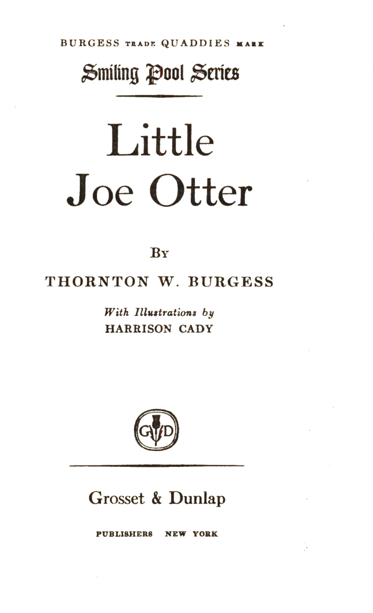 Of all the little Quaddies who live in the Green Meadows, the Smiling Pool and the Green Forest, none is more surprising than Little Joe Otter. He is full of surprises, is Little Joe. He has a way of suddenly bobbing up and just as suddenly disappearing, which makes him one of the hardest of all the little people to get acquainted with. Just when you think there is no one around, up bobs Little Joe and gives you a surprise. Just when you are watching him, down he goes and you never see him again.