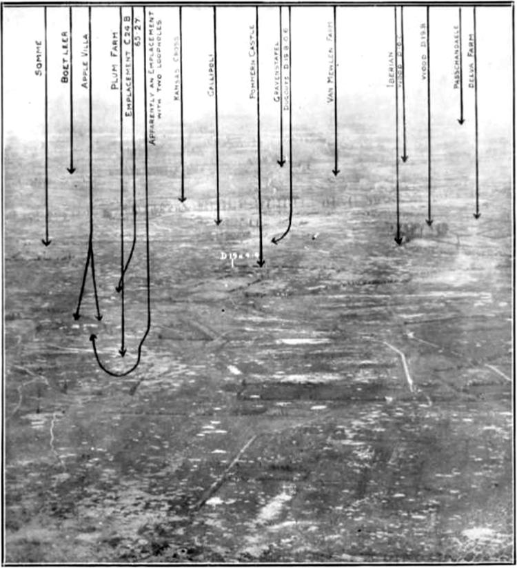 | Aeroplane Oblique Photograph, showing Objectives for Third Battle of Ypres | " | 61 |
