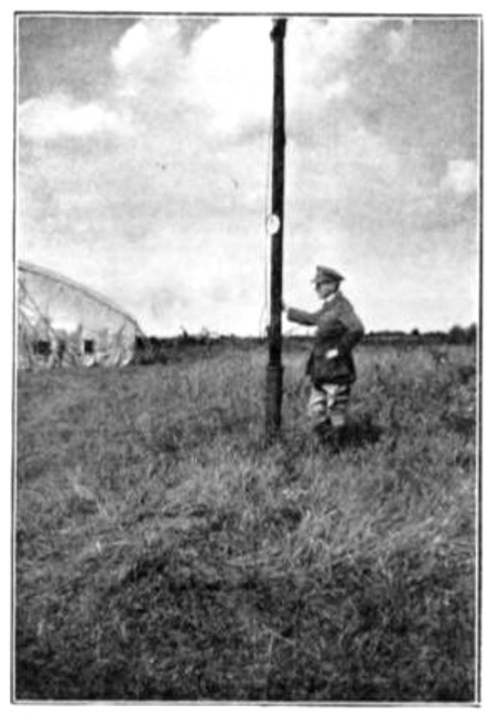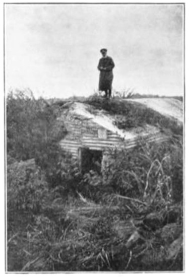 In March, 1915, we were suddenly moved to Oxted, where we were billeted in empty houses. There we began to dig, and completed, to the satisfaction of those who were in charge, a section of the London Defences running over the Downs. This was excellent experience, as there was every kind of soil to be contended with—clay, chalk, sand, and a sort of conglomerate, composed of what seemed to be melted flints, which blunted any pick in about five minutes. Here we first came into contact with elements of Kitchener’s Army, which were engaged on similar work.