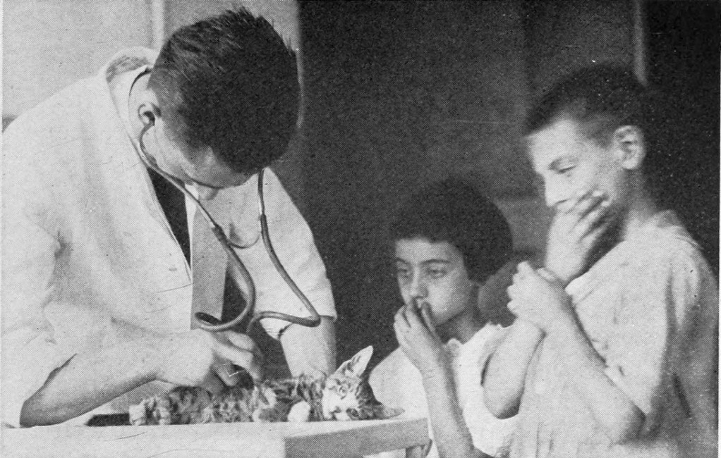 In this country no layman loses any sleep on account of bubonic plague. Is that because it does not exist? Not at all. It comes to our waters, even effects a landing sometimes. But we have a small garrison of vigilant medical men on our coasts watching day and night for that enemy, ready to give him instant combat if he comes. We sleep in peace because we trust that garrison. Thirty years ago we did not know what caused this terrible plague, but in 1894 the germ (Bacillus pestis bubonicae) was discovered. Even then it was not known how the disease was carried or what caused it to spread so rapidly—and before it could be combated successfully, that must be known. A series of experiments on living animals, chiefly rats, guinea-pigs and monkeys, yielded the desired information and through these experiments we have been delivered from this terrible scourge. It was known that rats were subject to plague; consequently[3] attempts were made to find out how it was transmitted from one rat to another. The idea that it might be carried by parasites occurred to several investigators. Accordingly, healthy rats were placed in cages close to diseased rats; they remained perfectly well until a few fleas were introduced. Then, almost immediately, the hitherto healthy rats were stricken with plague. Cages containing healthy monkeys were suspended over cages occupied by diseased and flea-infested rats. At regular intervals the monkeys were lowered nearer to the stricken rodents. The monkeys were all right until they were brought within jumping distance of a flea, when they at once contracted the plague. These and other experiments left no doubt that rat fleas were the carriers among animals, and since rat fleas also feed on man when their natural prey is not available, it was an easy matter to show that the plague is spread by means of rat fleas. This led to a definite program for checking the spread of the disease, by relentless warfare on fleas and the rats that carried them. The rats were trapped, their breeding places destroyed, and diseased rats from infested ports were prevented from entering the country. For example, when it was found that rats frequently come ashore along the cables stretched between the ships and the wharves, metal cones similar to those used to prevent rodents from climbing into corn cribs were placed on the cables. The fact that[4] I wish to emphasize is that it is due to experiments on living mammals that this black death is no longer a terror to us.