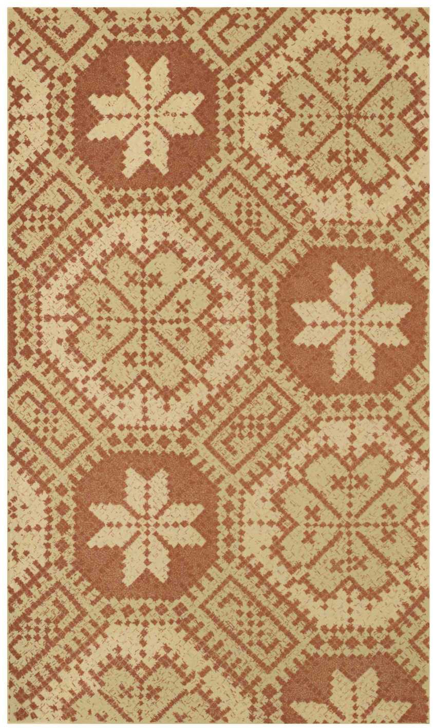 The materials out of which the articles in this collection were woven, are severally wool, hemp, flax, cotton, silk, gold, and silver. The silken textures are in general wholly so; in many instances they are wrought up along with either cotton, or with flax; hence, in ancient documents, the distinction of “holosericum,” all silk, and “subsericum,” not all silk, or the warp—that is, the longitudinal threads—of cotton or flax, and the woof—that is the cross-threads of silk. Very seldom is the gold or the gilt silver woven into these textiles found upon them in a solid wire-drawn form, but almost always, after being flattened very thin, the precious metal was wound about a very small twist of cotton, or of flax, and thus became what we call gold thread. As a substitute for this, the Moors of Granada, and after them the Spaniards of that kingdom, employed strips of gilded parchment, as we shall have to notice.