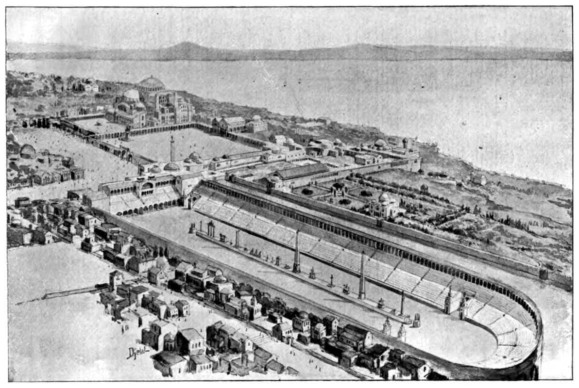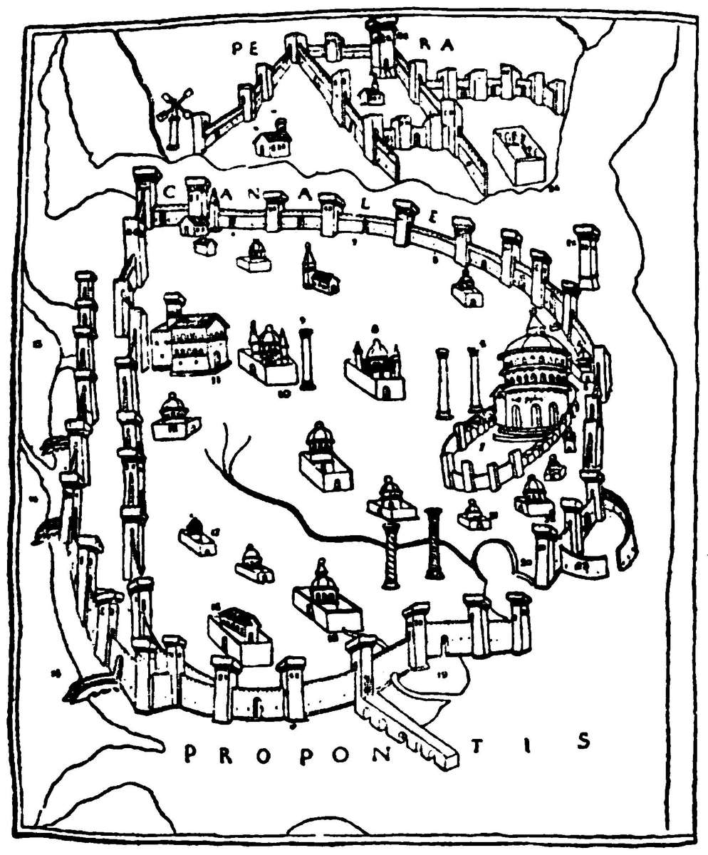 L’empereur, désireux de réaliser les vœux des Romains, choisit d’abord l’emplacement de l’ancienne Ilion, patrie [p. 8] des premiers fondateurs de Rome et que son peuple avait maintes fois essayé de réédifier. Toutefois les Romains, opposés à ce que l’Empereur y fixât sa résidence au détriment de Rome, témoignèrent leur mécontentement. C’est pourquoi Constantin décida de ne pas reconstruire l’ancienne ville et choisit Byzance qui, par sa situation privilégiée, son commerce, la fertilité de son sol, ses pêcheries abondantes, répondait à toutes les exigences d’une capitale.