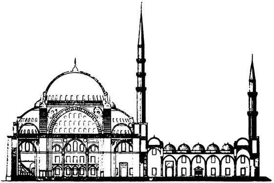 35. Mosquée de Suleïmanié. Galeries de la façade et fontaines d’ablutions 177