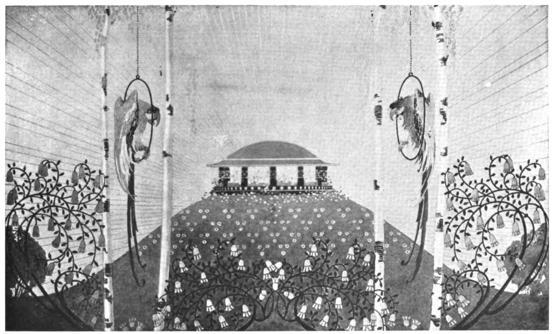 The spectators of the strange entertainment have at last departed, and the long e’s, ungrateful to the ear of the Attic scholar, are heard no more. In the far centre of the theatre a man is taking apart a mechanism—that from which the deus sprang in this evening’s play. Two other men remain. One walks musing and absorbed, looking toward that entrance whereby Orestes was wont to make his way to the stage. The other walks slowly round about the theatre, marking its aspects, and thinking of practical things. Presently they meet at the spot where once the choragus stood. They salute each other.