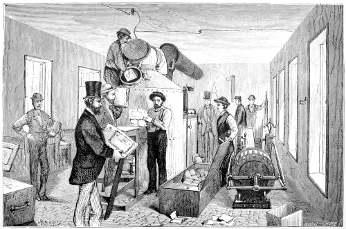 This room is in the Redemption Bureau, Treasury-Building. Over One Hundred Thousand Dollars’ worth of Fractional Currency alone is here daily received for redemption: out of which about Three Hundred and Fifty Dollars’ worth of counterfeit money is detected, stamped, and returned.