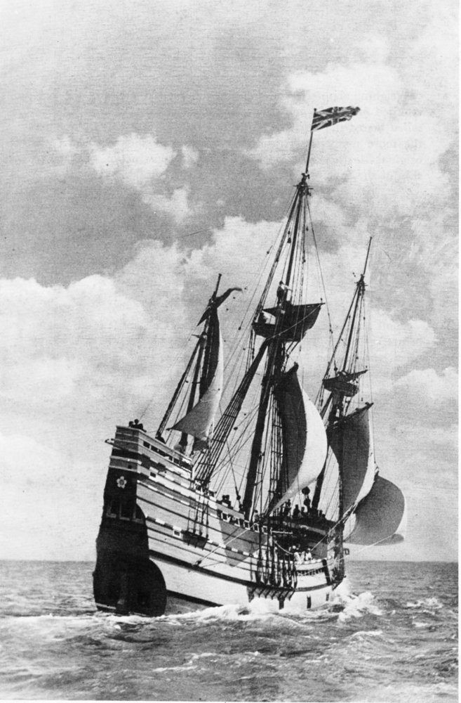 Weighing about 180 tons, and only about 106 feet long, the overcrowded Mayflower must have had a rough voyage. The Pilgrims sailed across the north Atlantic to avoid pirates who frequented the more temperate latitudes. No one knows exactly what the original Mayflower looked like, but this reconstruction of a typical ship of the time and class is probably very similar.