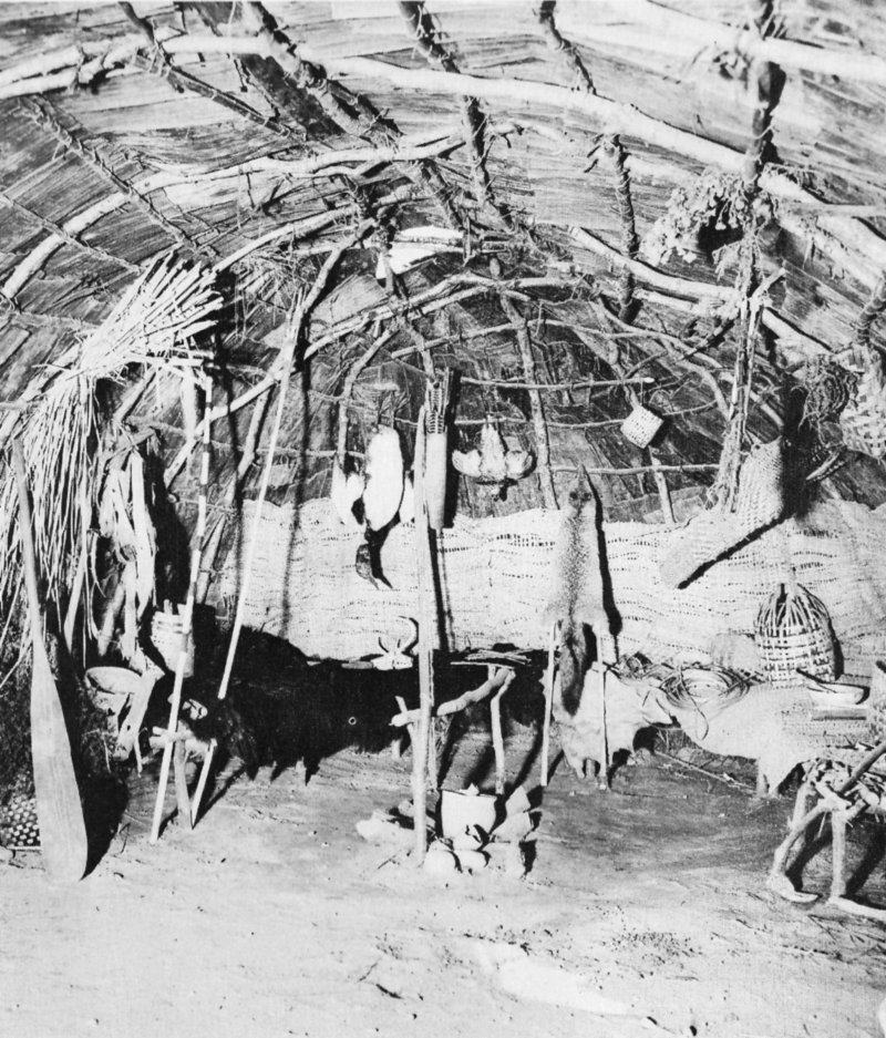 This reconstructed wigwam and its contents are like those encountered by the Pilgrims during their first explorations. The bark huts of their Algonquian Indian neighbors soon became familiar shelters to the Pilgrims, whose descriptive accounts allow us to understand much of the native way of life which fast disappeared in New England.
