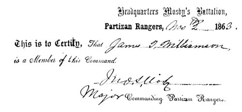 [L] The “Mosby Man” here mentioned, was Joseph Nelson, afterward Lieutenant of Company A, 43d Battalion Virginia Cavalry, Mosby’s Rangers.