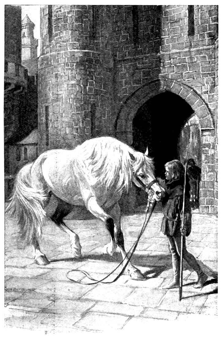 The children under the oak-trees played at knights and robbers. Neighboring the meadow was the common pasture, where tethered goats and sheep, and large, slow cattle, stood them as great flocks and caravans to sally out upon and harry. Now and again a party would break forth from one clump of trees to raid their playmates in a pretended village within another. Of storming castles, or of real knights’ play, they knew naught; for they were of the common people, poor working-folk sunk to a state but little above thraldom, and heard, in the guarded talk of their elders, stories only of the robber knights’ dark acts, never of deeds daring and true, such as belong to unspotted knighthood.