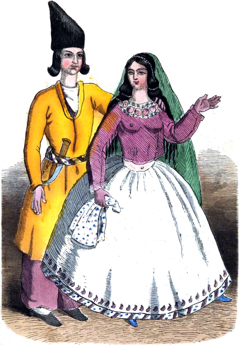A zsidók, kiknek legnagyobb községei Hammadanban, Kirmansah-, Iszfahan-, Kasan-, Teheran- és Sirázban vannak, de számuk nem rug többre 2000 családnál; ezek – ha dr. Wolf nem csalódik – még azon zsidóknak maradványai volnának, kiket az ős hajdanban, a babyloni -20- fogság alkalmával ide hurczoltanak. A szaszanidák uralkodása alatt igen szép számmal voltak, azonban az Iszlammal nyomorgatás és üldöztetés ideje következett rájuk, minek folytán igen megkevesbültek; nagy része áttért az iszlamra, a többiek, Iran legszegényebb s legnagyobb nyomorban élő lakói; zsarnokság és fanatismus még ez ujabb időkben sem hagyják békén őket; igen méltányos lenne, ha az európai követségek őket is ugy vennék pártfogásuk alá, mint a nesztorianusokat – s más egyéb keresztyéneket.2) Arczvonásaik gyakran a férfiszépség valóságos mintaképei; nyelvük egy persa-patois-val igen erősen vegyített héber, mely utóbbi nyelvet az előkelőbbek irásra is alkalmazzák.
