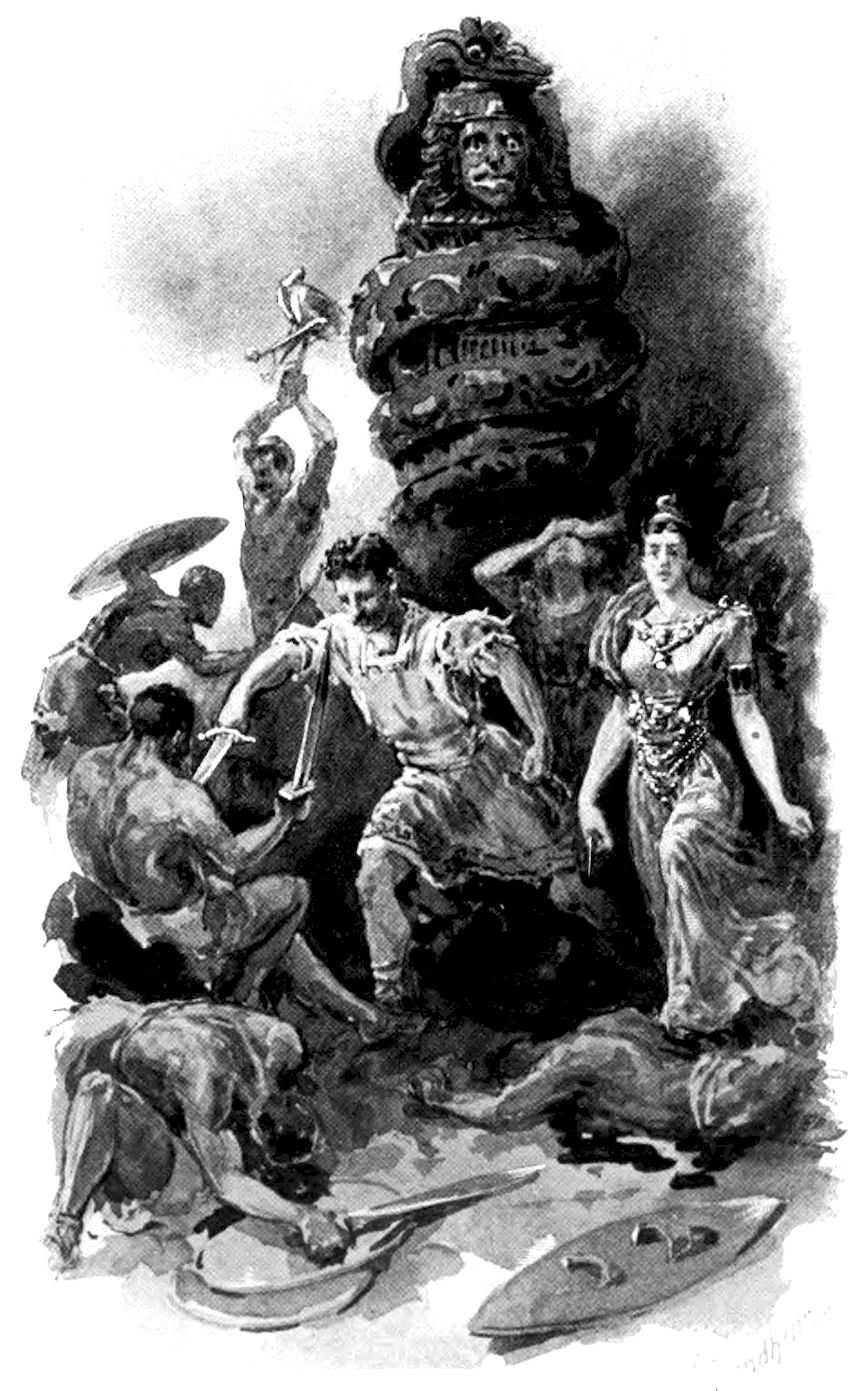 “Him we slaughtered there at the outer gate, as is the law for strangers. The maid was at the Queen’s behest brought to the palace, but whether as the bride of Hed, I know not. Such service rendered to our god is like to be her portion: nevertheless, three moons must wax and wane before the feast, wherefore you who are of her people can yet save her from the death marriage, unless, indeed, Hed be wroth, or Lah, the Queen, set her will to thwart you.